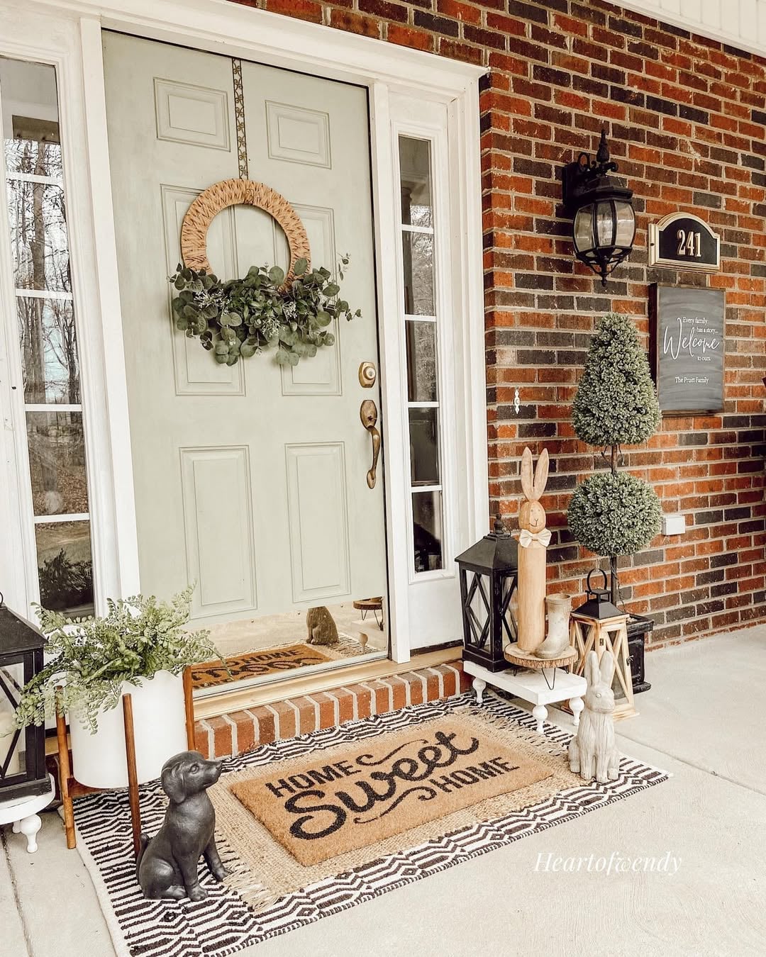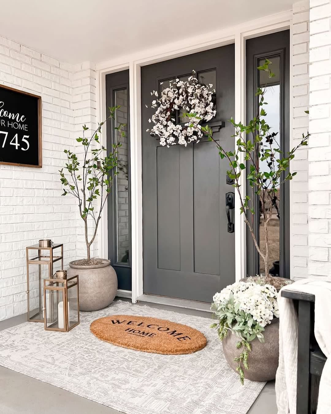 A welcome sign is a fantastic way to greet guests and add charm to your entryway. Opt for a wooden sign with playful lettering or a chalkboard-style sign that you can customize for each season. For spring, think pastel colors, floral accents, or even a cute message like “Bloom Where You’re Planted.” Place it near your doorway or propped up alongside some potted plants to create an inviting and cozy vibe.